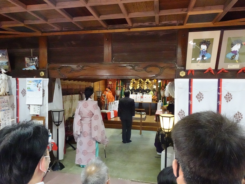 戸ヶ崎香取神社での参拝の様子。ご祈祷の儀式が始まると、厳かな雰囲気の中で神職の方による祝詞が響き渡ります。