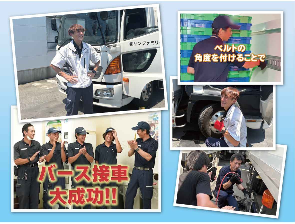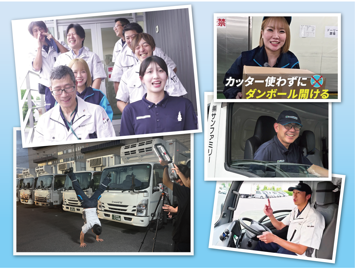 1年を通して関東から東北まで10拠点以上をまわり撮影した、当社の魅力や取り組みをどんどん配信中! 普段は見られないトラックやフォークリフトの構造や裏ワザをはじめ、営業所の紹介やインタビューなどなど、サンファミリーの秘めた魅力を動画でご紹介!